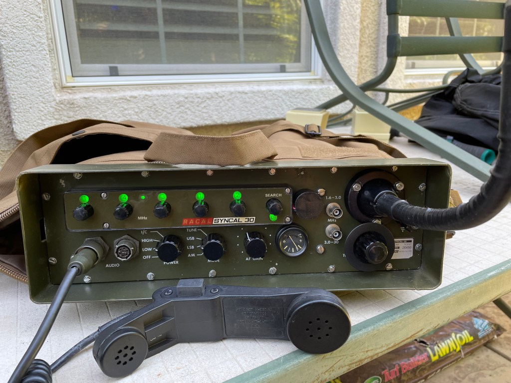 Since I am a ham radio enthusiast, and enjoy vintage equipment, I picked up a Racal TRA-931 backpack military transceiver. I had to replace quite a few parts to get it running again. I also bought a battery pack – had to replace 20 nicad batteries and an original whip antenna.